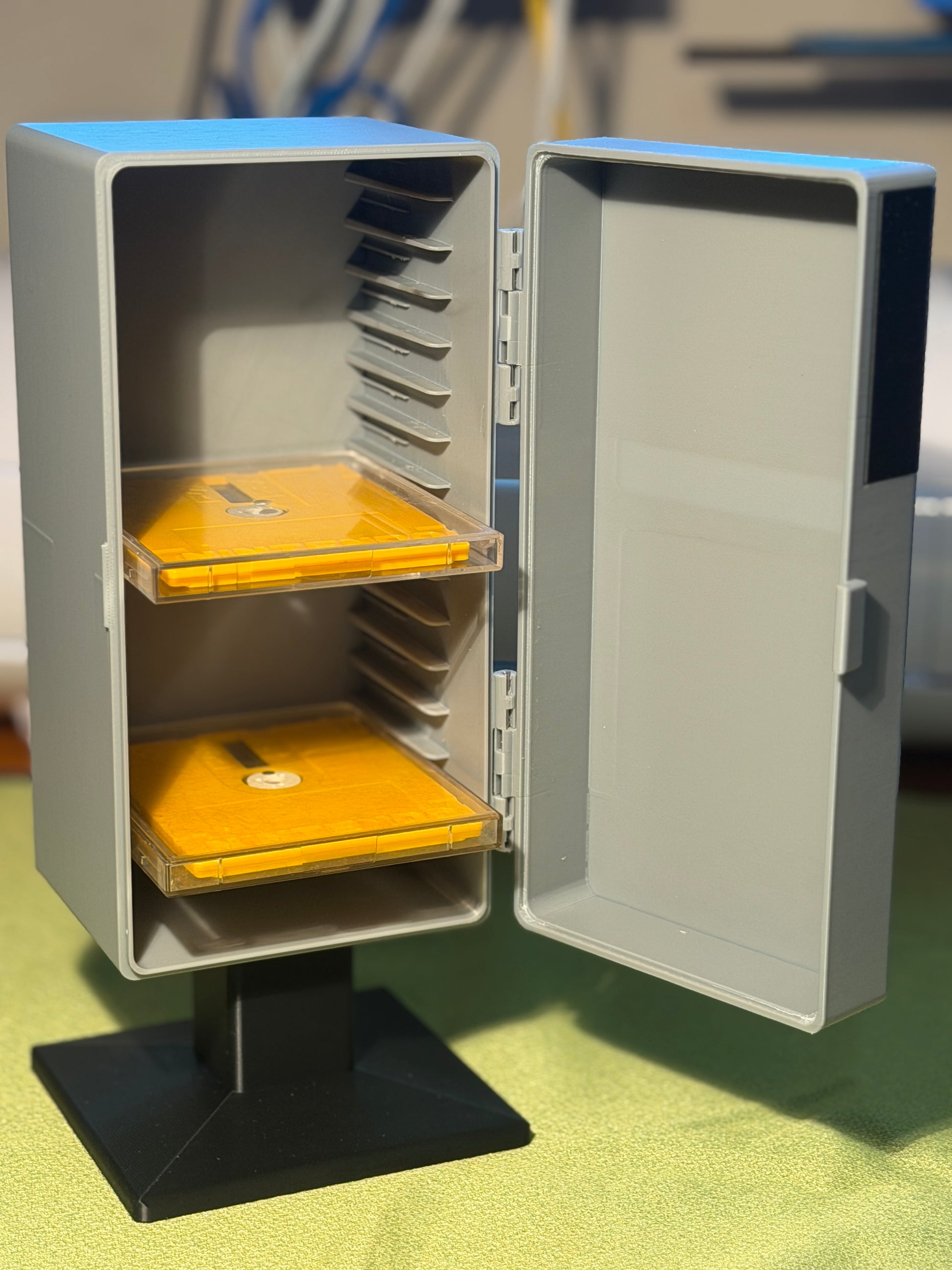 Modeled and printed by me. All parts are the final versions with correct tolerances and fitment. Product will be glued together but stickers not applied. There are 4 monitor scenes to choose from and part of the fun is applying the minty fresh stickers yourself. Dorr opens and closes perfectly. Not an exact 1:1 to the original but awesome anyway! The color is almost an exact match to the original. With originals scarcer than hens teeth these days and tariffs and duties, the $275 (after tariffs, shipping and duties) faded gnarly original is almost unobtainum unless you have deep pockets. Here is the Nerdspaceship solution!